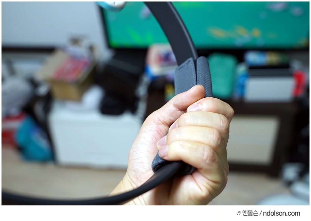 링피트 어드벤처 게임은 링콘과 레그 스트랩이라는 두 가지 주요 액세서리를 사용합니다. 닌텐도 스위치 조이콘이 사용자 플레이어의 신체 움직임을 게임 내 동작으로 변환하는 역할을 합니다. 링콘의 탄탄한 내구성과 편안한 그립감이 인상적이었으며, 조이콘을 장착하는 과정도 간단했습니다.
