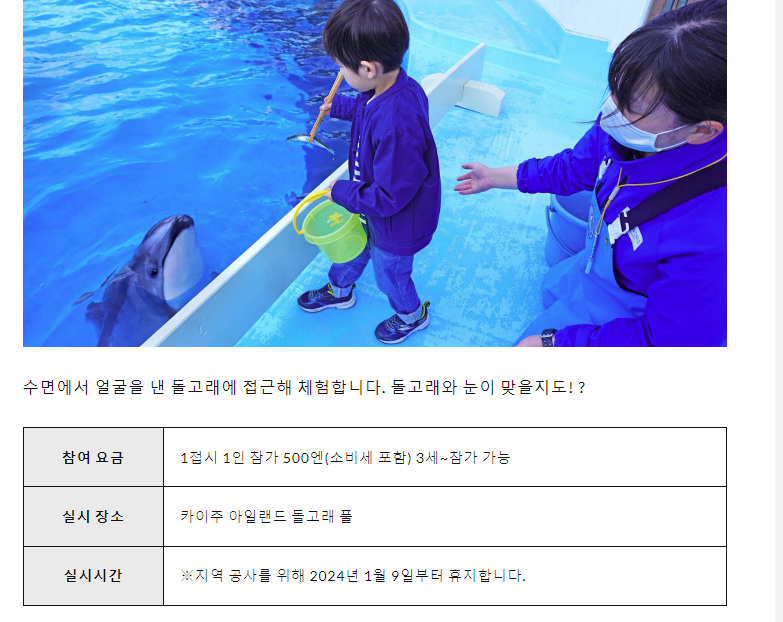 * 돌고래 먹이주기 예약 사이트 : https://marine-world.jp/walletpass/
