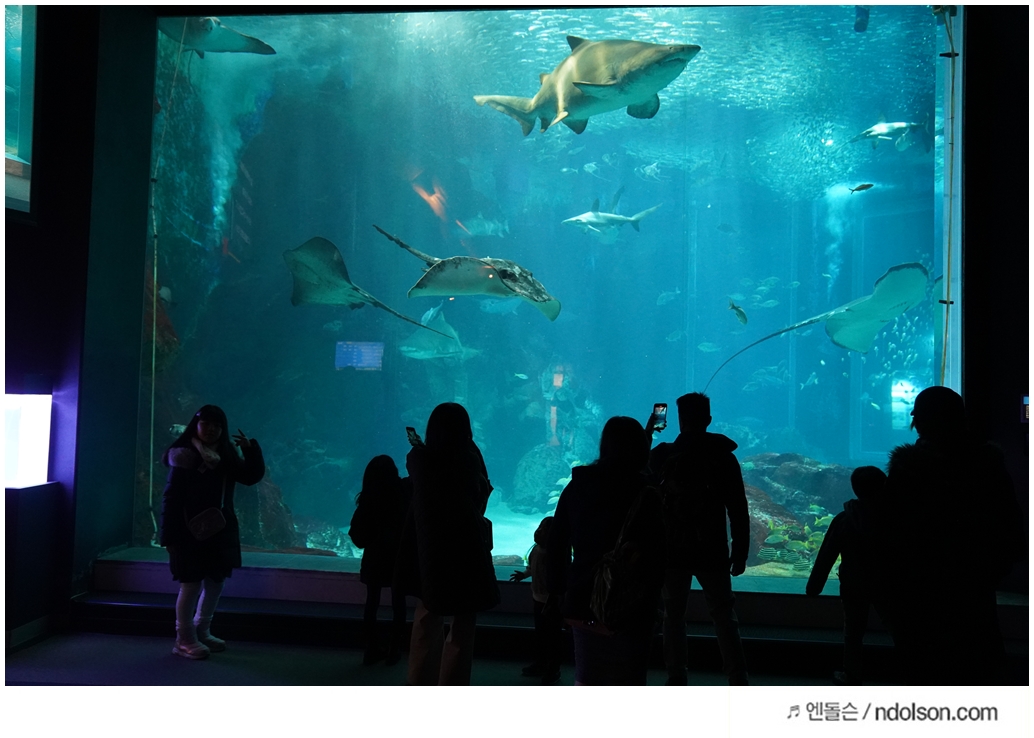 돌고래가 유리창문사이로 들어오는 타이밍이 포토존입니다.