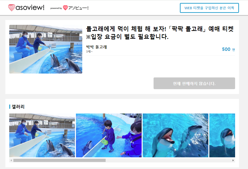 * 돌고래 먹이주기 예약 사이트 : https://marine-world.jp/walletpass/