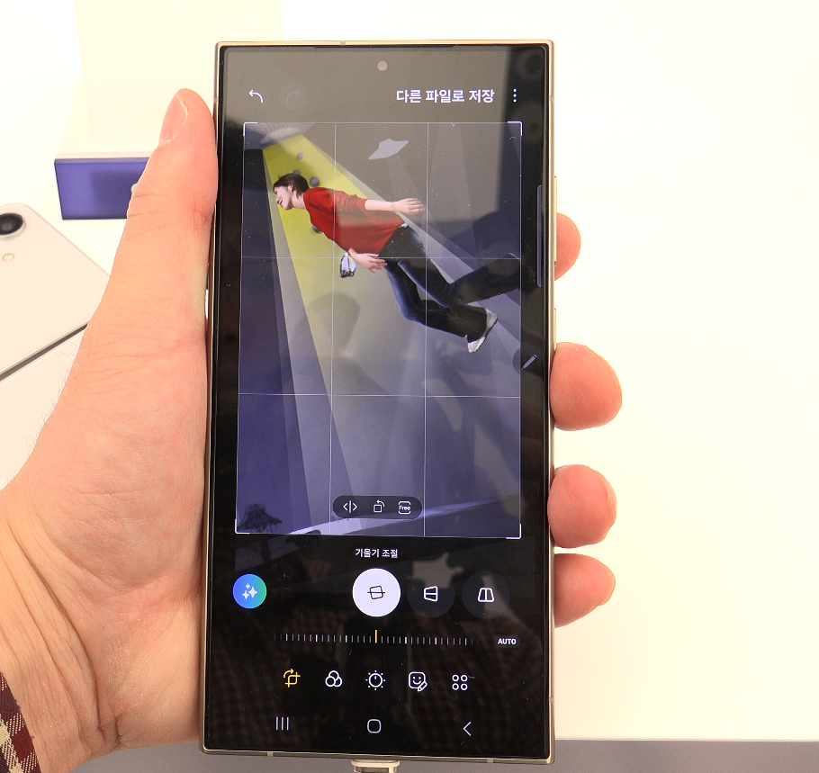 갤럭시 S24 시리즈의 카메라 사용 경험은 갤럭시 AI 기반의 ‘갤러리’ 앱 편집 기능이 있습니다. ‘편집 제안(Edit Suggestion)’ 기능은 AI가 사진을 분석해 사용자에게 맞춤형 편집 도구를 제안합니다.