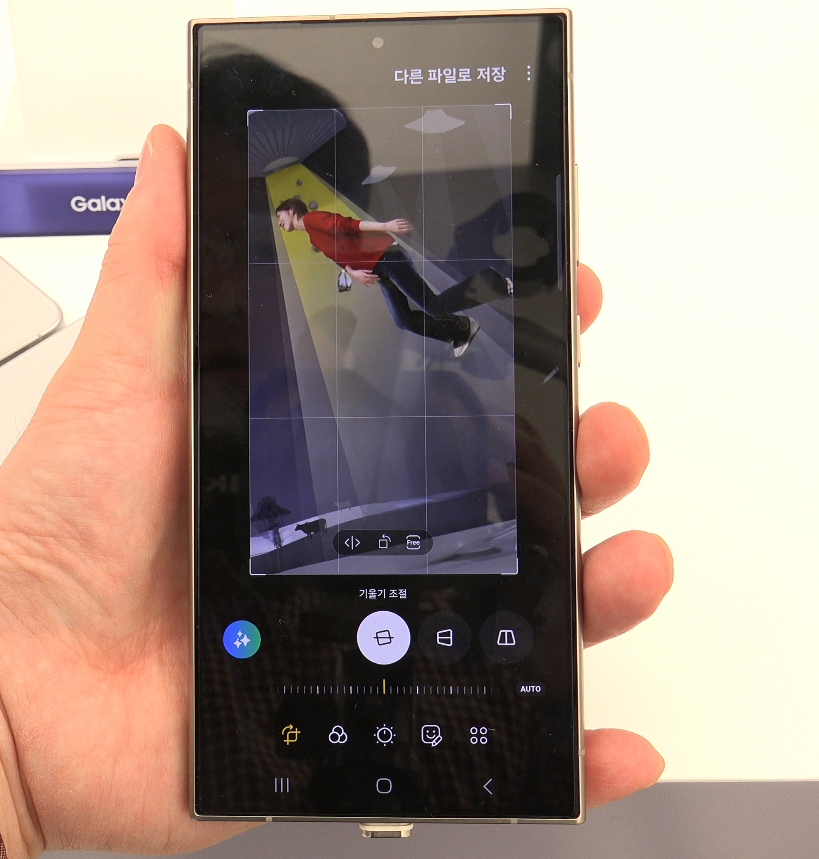 갤럭시 S24 시리즈의 카메라 사용 경험은 갤럭시 AI 기반의 ‘갤러리’ 앱 편집 기능이 있습니다. ‘편집 제안(Edit Suggestion)’ 기능은 AI가 사진을 분석해 사용자에게 맞춤형 편집 도구를 제안합니다.