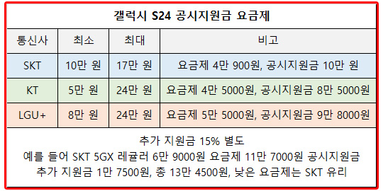 - S24 가격: 최저 115만5000원부터 최고 212만 7400원까지