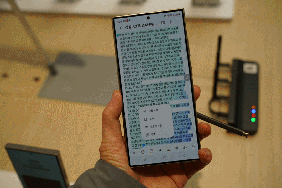 갤럭시 S24는 삼성노트앱에서 메모한 걸 인공지능이 요약하고 번역해 줍니다. 노트 어시스트' 기능으로 사용자의 글이나 메모를 요약 정리해 줍니다.