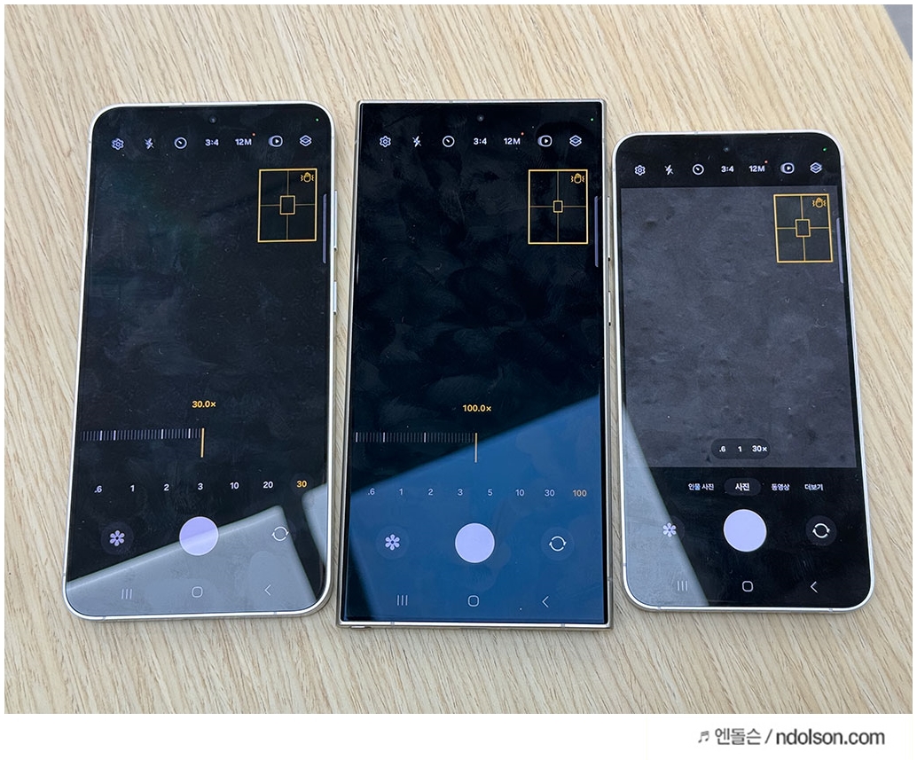 갤럭시 S24 울트라는 100배 스페이스줌, 갤럭시 S24 일반, 플러스는 30배줌을 지원합니다.