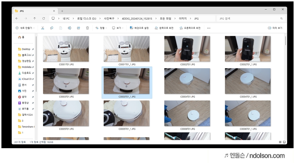 다행히 수정날짜와 맞추어 보니, 삭제된 로봇청소기 사진이 있네요.