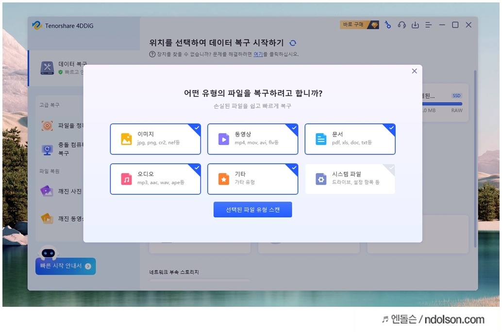 테너쉐어 포디딕(Tenorshare 4DDiG) 프로그램은 전문 복구 프로그램입니다.