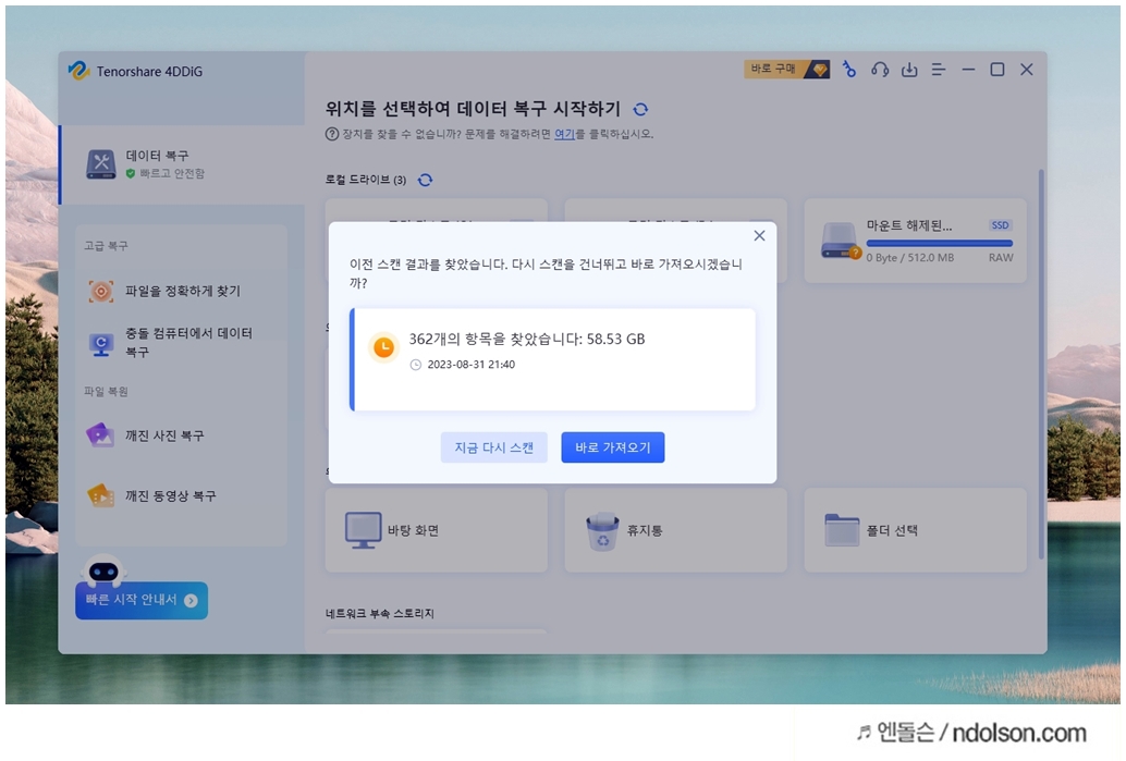 테너쉐어 포디딕(Tenorshare 4DDiG) 프로그램은 전문 복구 프로그램입니다.