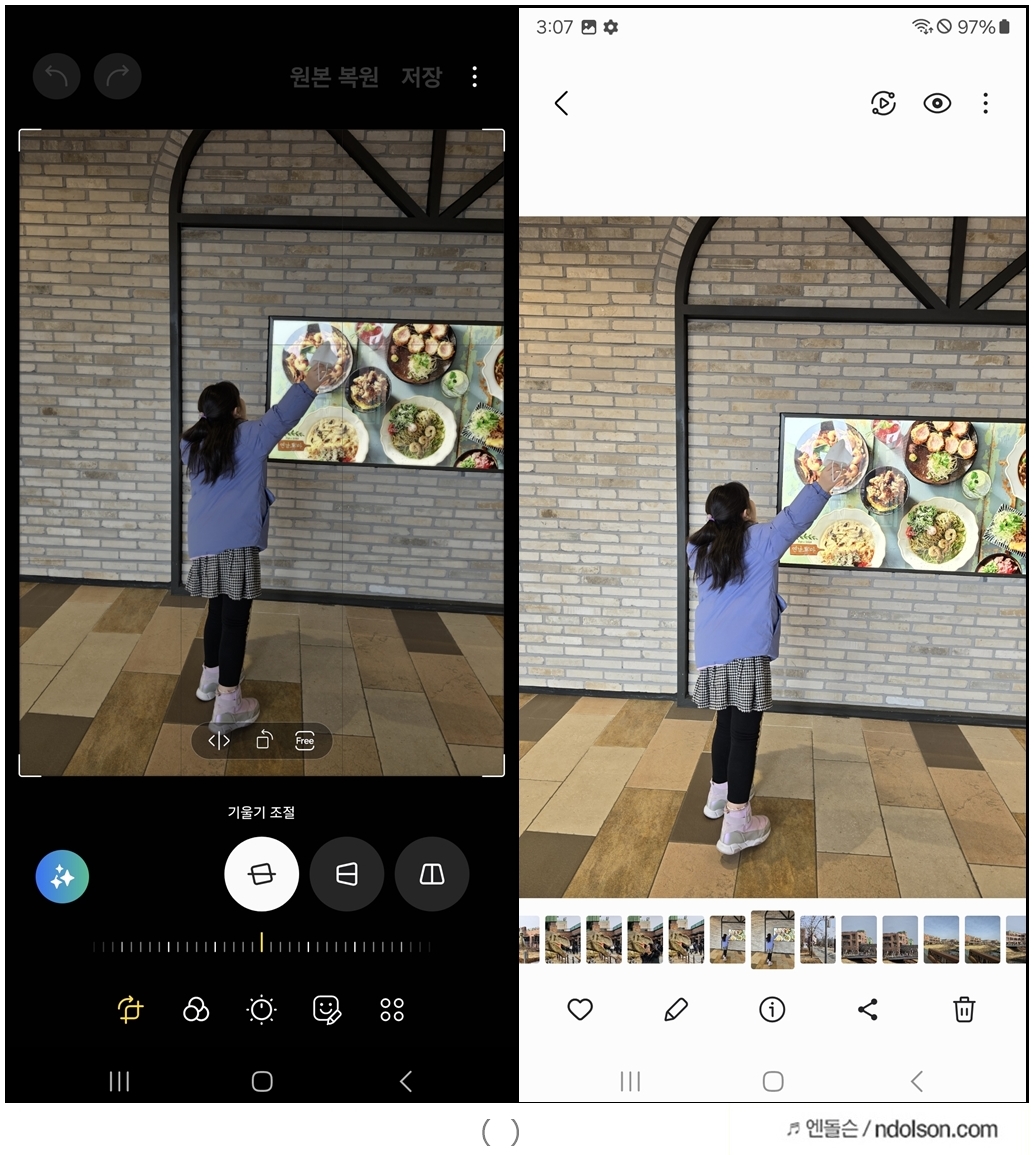 사진 갤러리앱이 완전히 달라졌습니다. 강력한 카메라와 결합된 AI 편집 기능으로 사진의 기울기 수정, 배경 교체, 인물 부분 편집 등을 자연스럽게 생성형 AI가 만들어서 처리해줍니다. 이걸로 딸아이 하늘에 나는 사진도 AI 편집으로 만들어봤는데요. 이런 거 재미있네요. 빈 공간도 알아서 AI가 뭘 만들어서 생성해 줍니다. 콘텐츠 생성자와 일반 사용자 모두에게 고급 편집 도구로 좋겠죠?