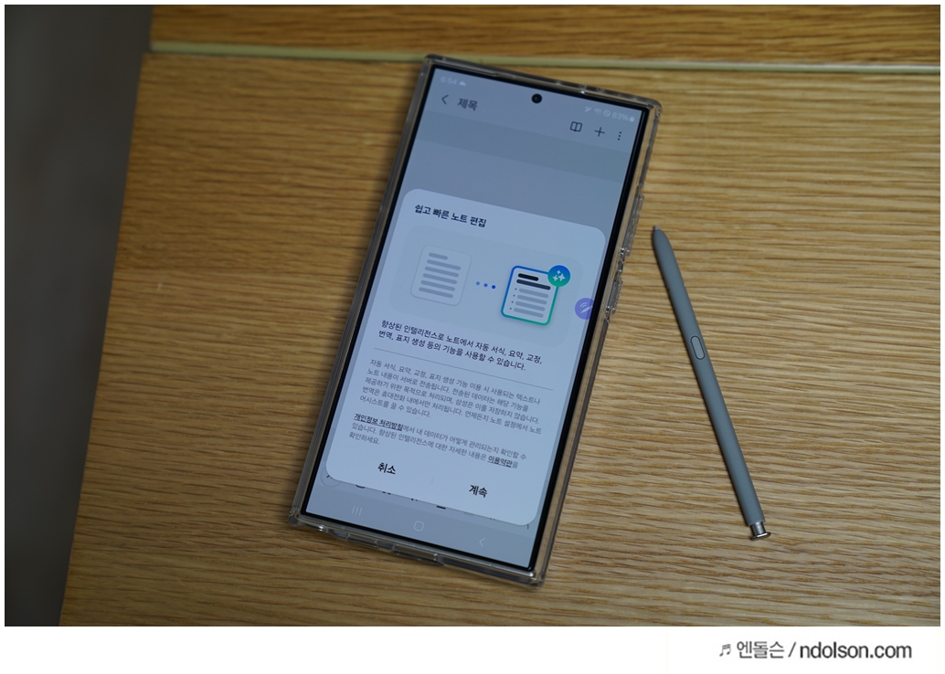 S펜으로 작성한 메모나 글을 AI가 자동으로 요약해주는 기능인데 대박입니다. 메모한 내용을 요약하고 분석해 줍니다. 정보를 신속하게 파악하고 정리할 수 있게 해 주네요. 그래서 회의록 작성, 학습 자료 정리 등에 유용하게 사용될 수 있습니다.