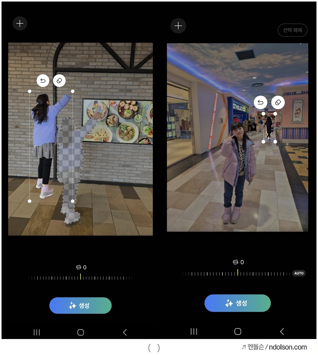 사진 갤러리앱이 완전히 달라졌습니다. 강력한 카메라와 결합된 AI 편집 기능으로 사진의 기울기 수정, 배경 교체, 인물 부분 편집 등을 자연스럽게 생성형 AI가 만들어서 처리해줍니다. 이걸로 딸아이 하늘에 나는 사진도 AI 편집으로 만들어봤는데요. 이런 거 재미있네요. 빈 공간도 알아서 AI가 뭘 만들어서 생성해 줍니다. 콘텐츠 생성자와 일반 사용자 모두에게 고급 편집 도구로 좋겠죠?