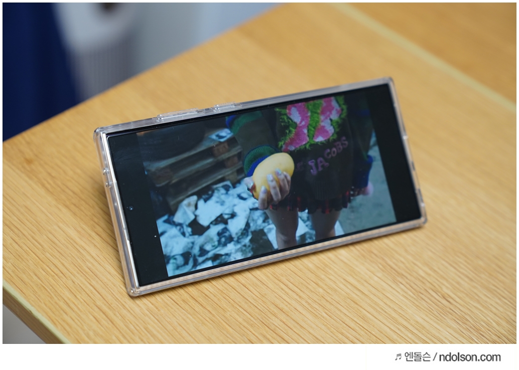 카메라가 갤럭시 S24 울트라의 경우, 튀어나왔지만, 케이스를 씌워두면 평평한 책상에 두어도 덜럭거리지 않습니다.