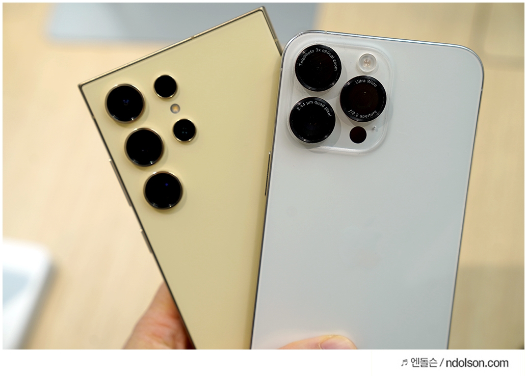 갤럭시 S24 Ultra 와 애플 아이폰 15 Pro 디자인