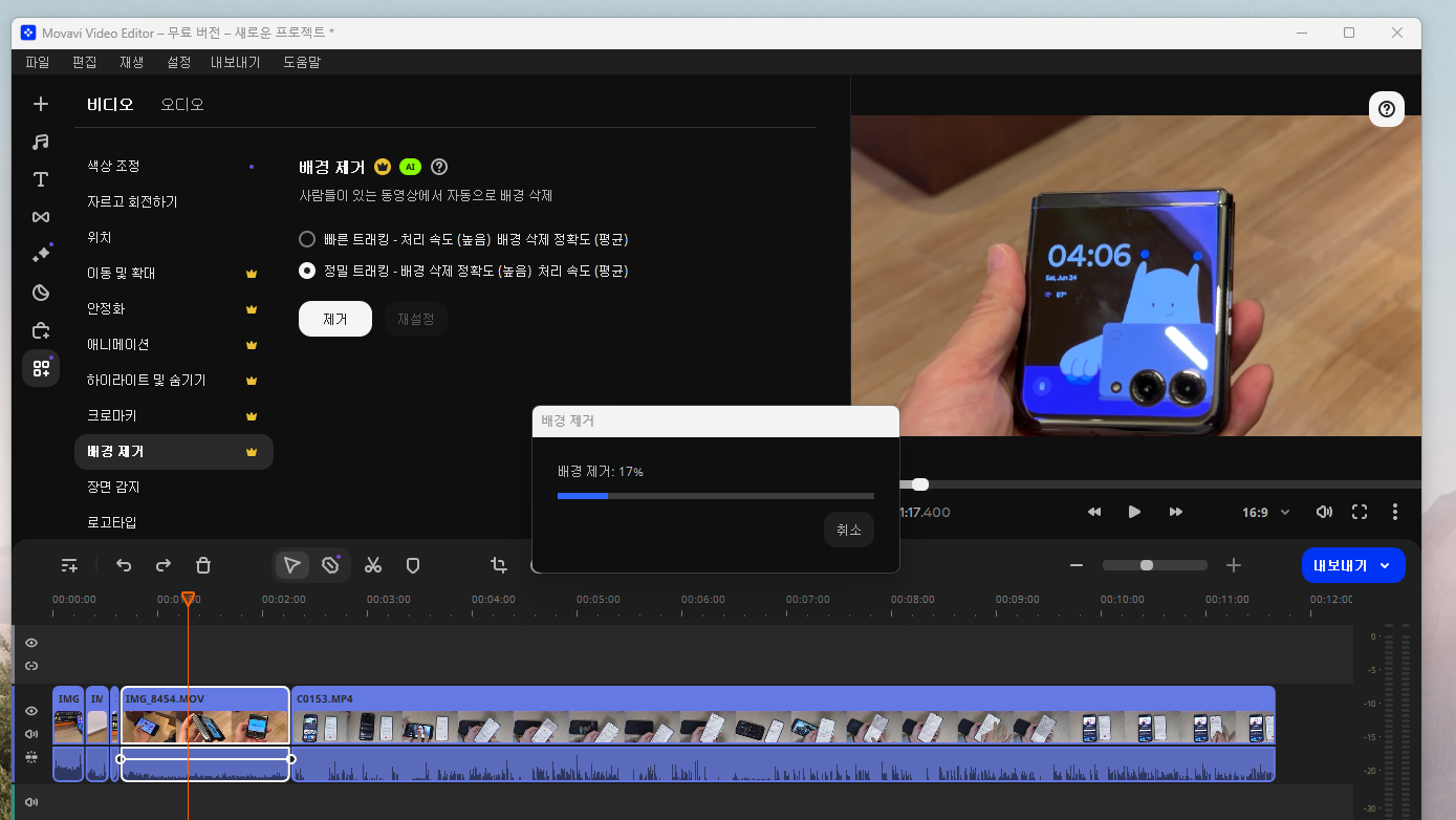 AI 배경 제거 기능은 그린 스크린 없이 비디오의 배경을 제거해 주며, AI 잡음 제거 기능은 영상에서 원치 않는 소음을 자동으로 제거해 줍니다.