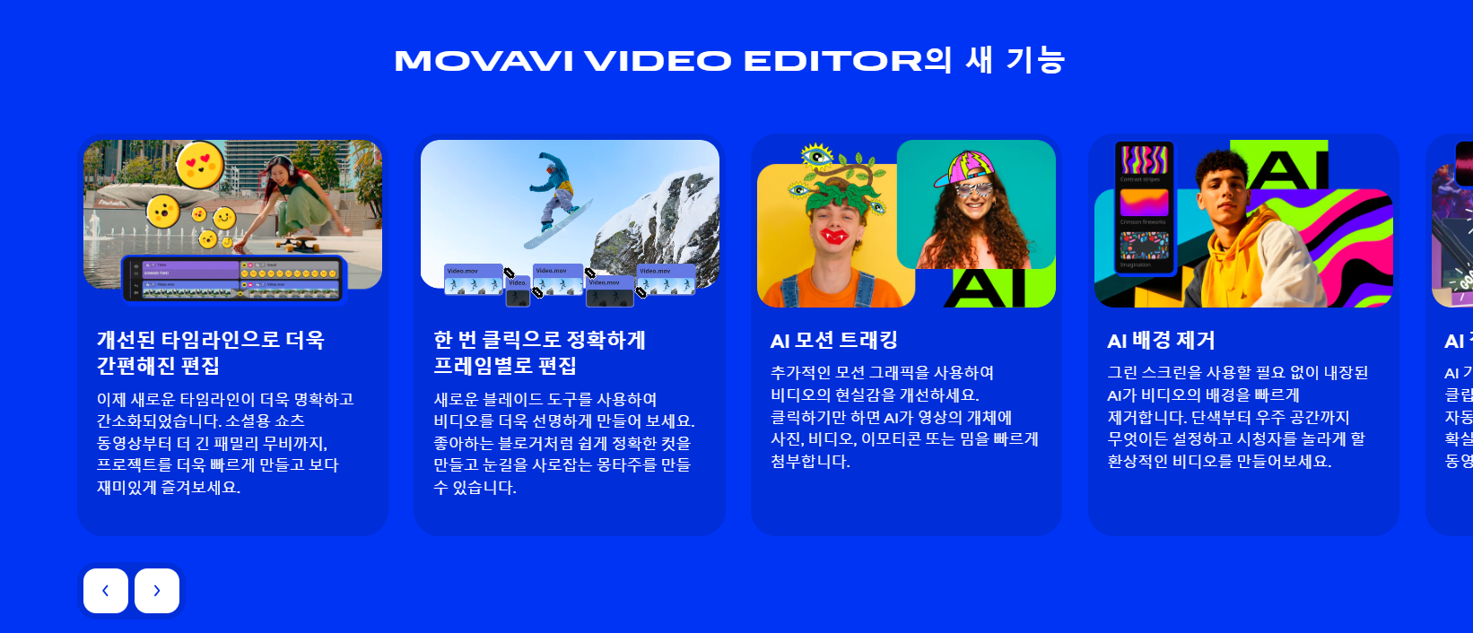 또 AI 기반 기능의 인공지능 기술을 활용한 콘텐츠 분석, 장면 감지, AI 스타일 전환 등 혁신적인 기능을 통해 사용자는 보다 쉽고 빠르게 전문적인 수준의 비디오 편집을 수행할 수 있습니다.