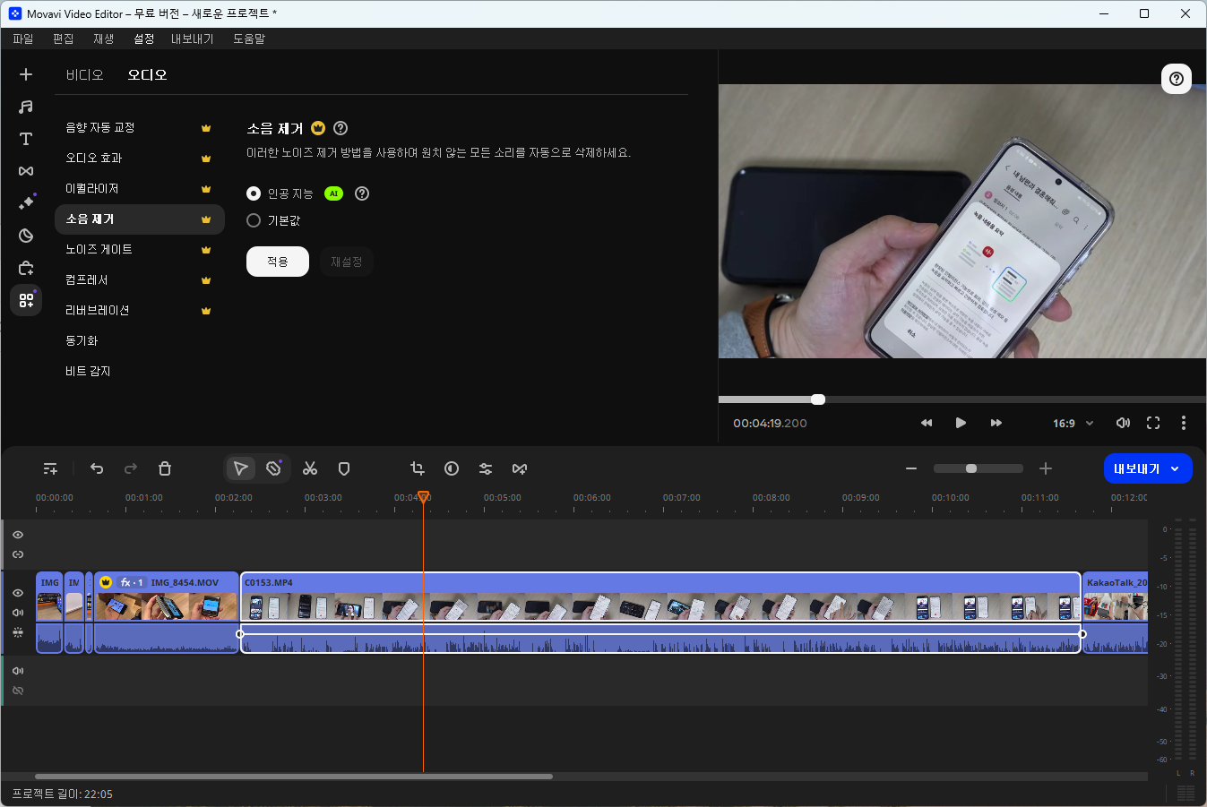 이런 AI 소음 제거 기능은 특히 영상 편집이 익숙하지 않은 사용자들에게 매우 유용한 옵션입니다. 복잡한 환경에서도 높은 품질의 오디오를 유지하고자 할 때 큰 장점으로 작용합니다.