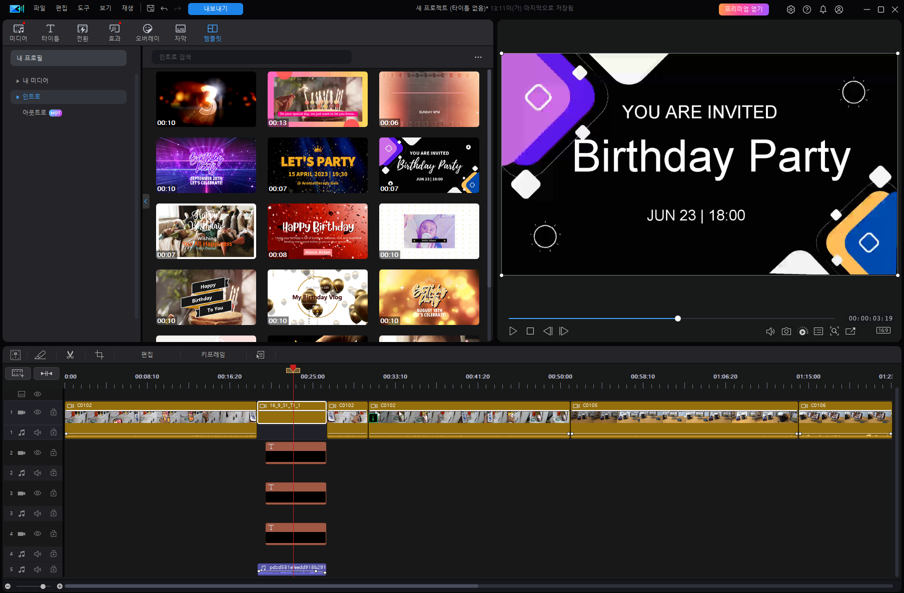 그 외에도 영상의 다양한 템플릿과 효과를 제공합니다.
