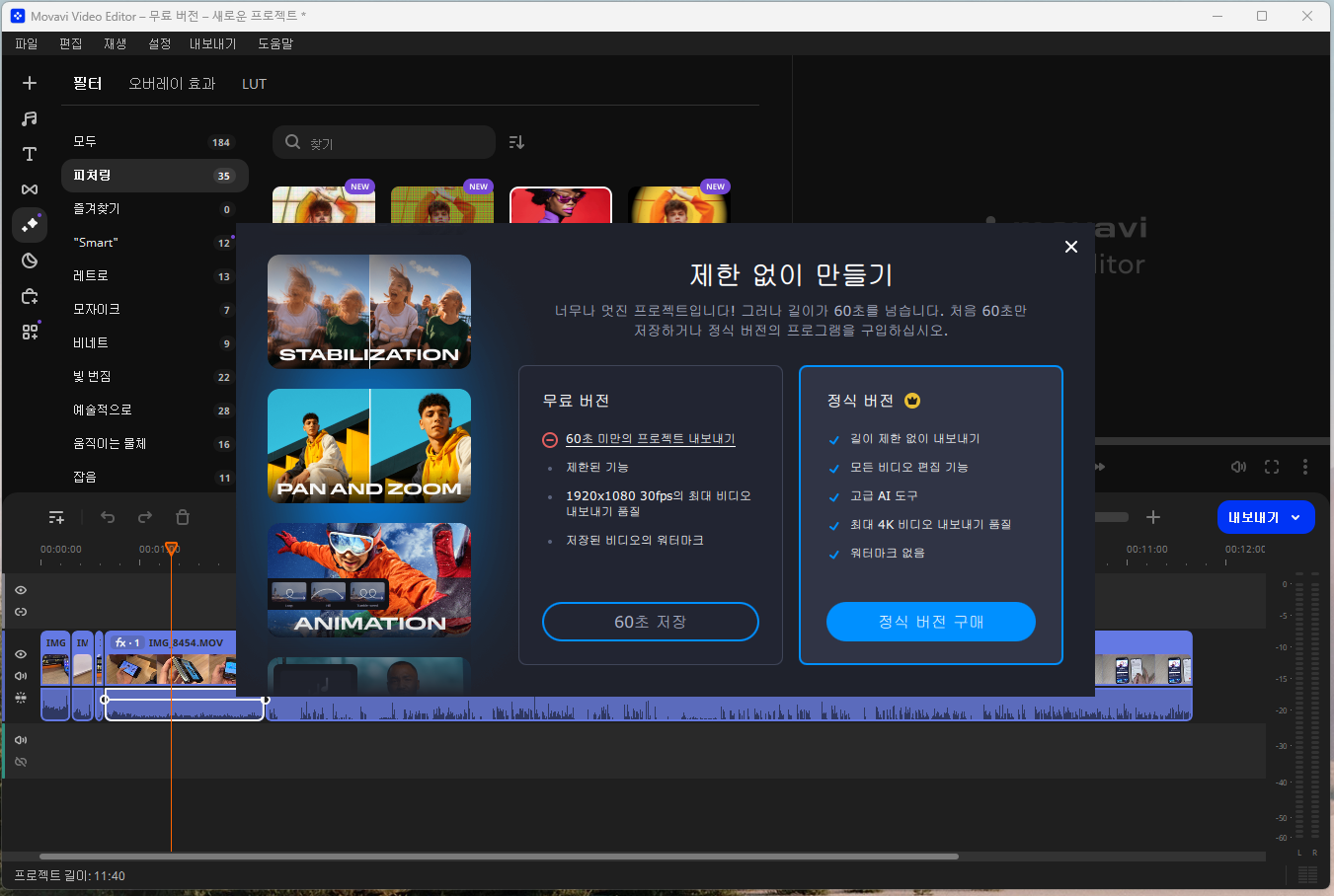 동영상 편집 프로그램의 체험판을 무료로 사용해 본 후에 구매를 고려해 보시는 것도 좋은 선택입니다. 무료로도 사용되며, 유료로 구매해서 쓸 수 있습니다.