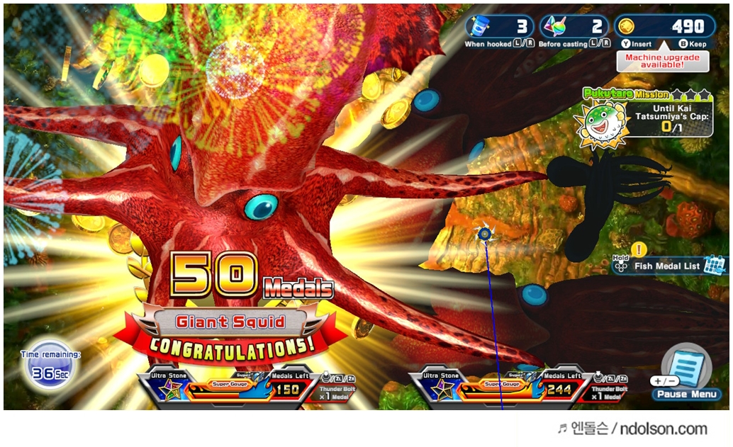 심지어 보스몹인 대왕 오징어를 잡을 때 소리 지릅니다.