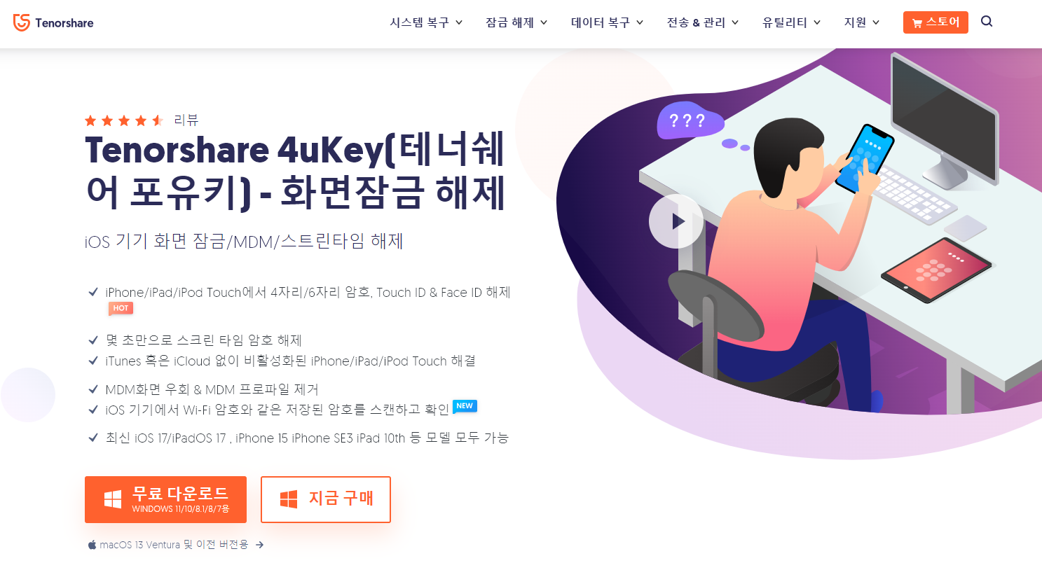 [공식]Tenorshare 4uKey(테너쉐어 포유키)- 원클릭으로 아이폰 애플 아이디와 잠금 화면을 비밀번호