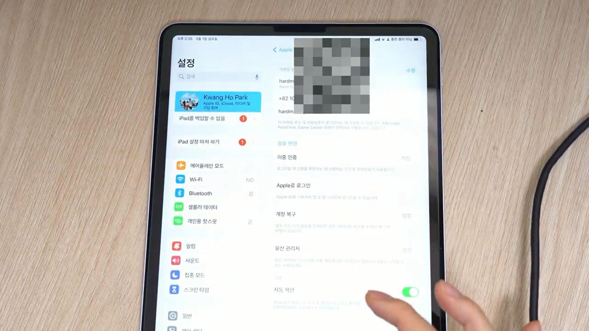 아이패드가 초기화되었기 때문에 기본 설정을 해줍니다.