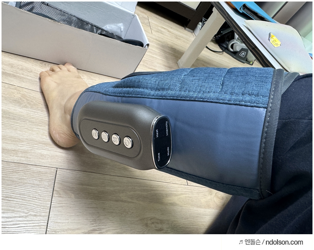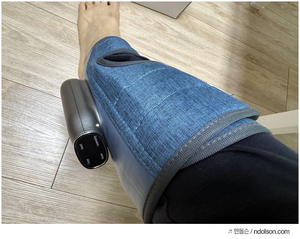 강력한 공기압 마사지로 힘없는 저가형같지 않은데요. 레벨로 강도 조절이 됩니다. 처음에는 공기압의 강도가 생각보다 세서 놀랐습니다. 하지만 사용하면 할수록 이 강력한 압력이 종아리 근육의 깊은 부분까지 잘 마사지해 주는 것을 느낄 수 있었습니다.