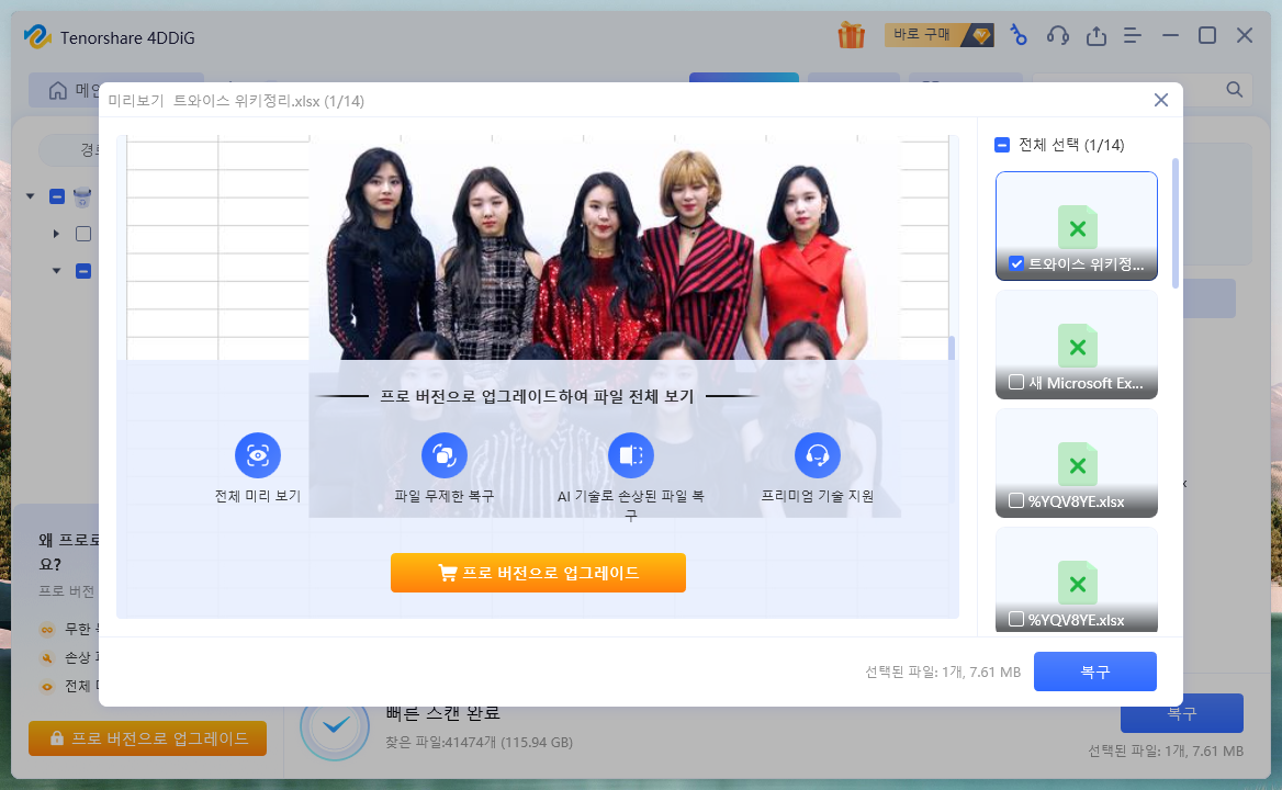 삭제한 엑셀 파일을 복구할 수 있게 스캔하였네요!!