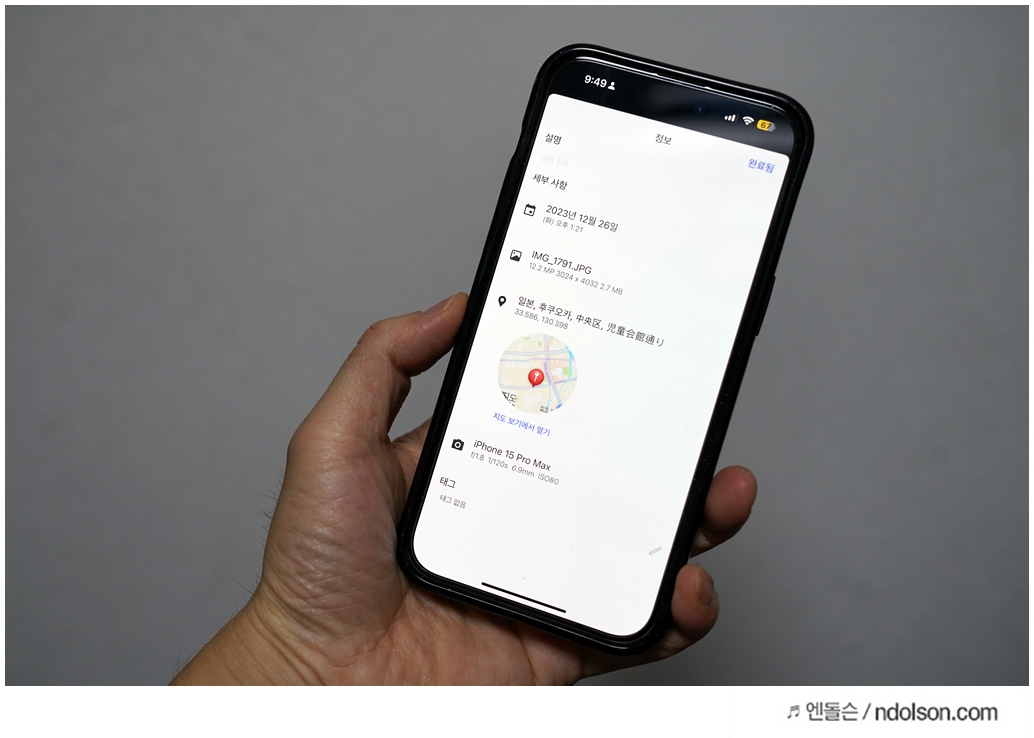 사진에는 태그도 넣을 수 있고, 위치정보가 있어서 어디에서 촬영했는지 알기 쉽네요.