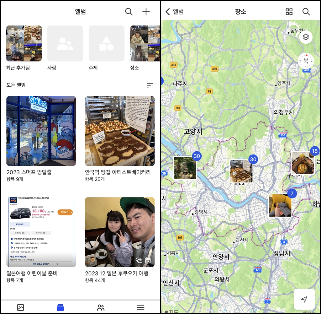 여러 사람이 여행에서 찍은 사진들도 앨범으로 모아 관리하기 효율적여서 추천합니다.