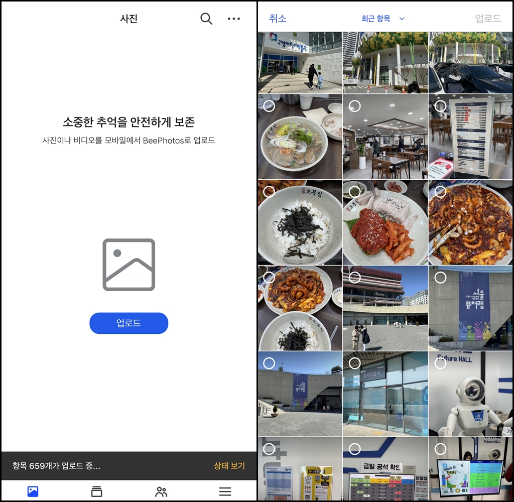 또 항상 스마트폰의 저장 공간이 부족한 분들에게도 추천합니다. 사진 촬영하다가 용량이 부족하면 바로 비스테이션으로 업로드하면 되니깐요!