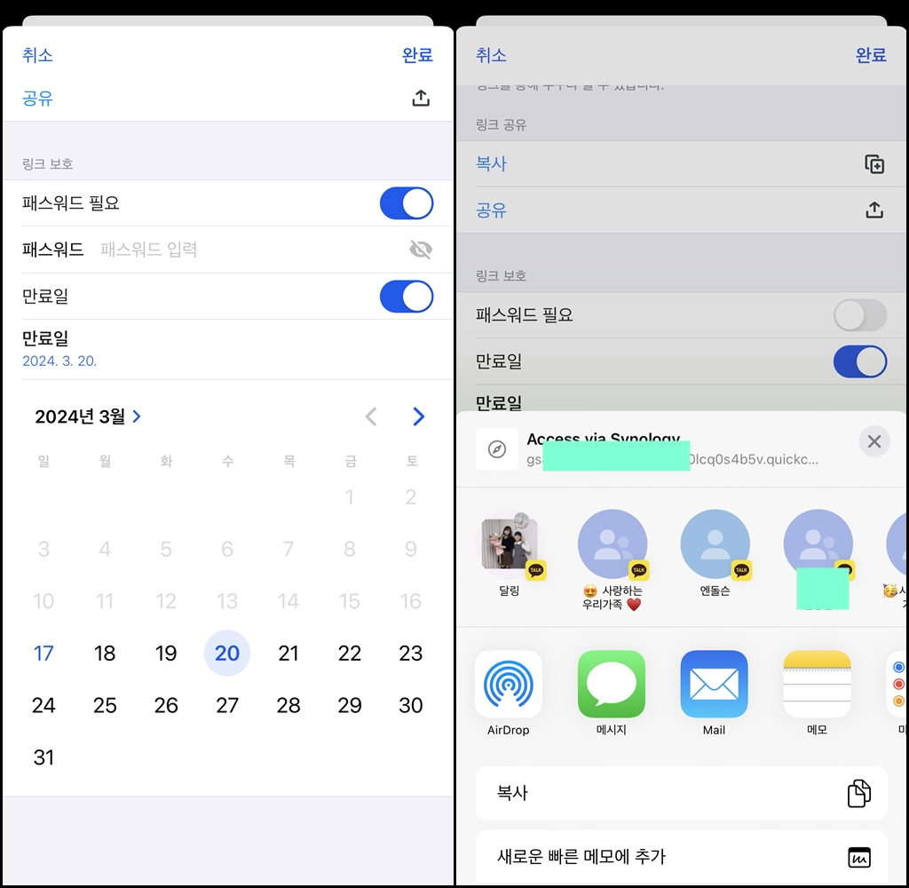 대용량 사진을 카카오톡으로 공유할 때 패스워드와 만료일을 걸어두면 좋습니다.