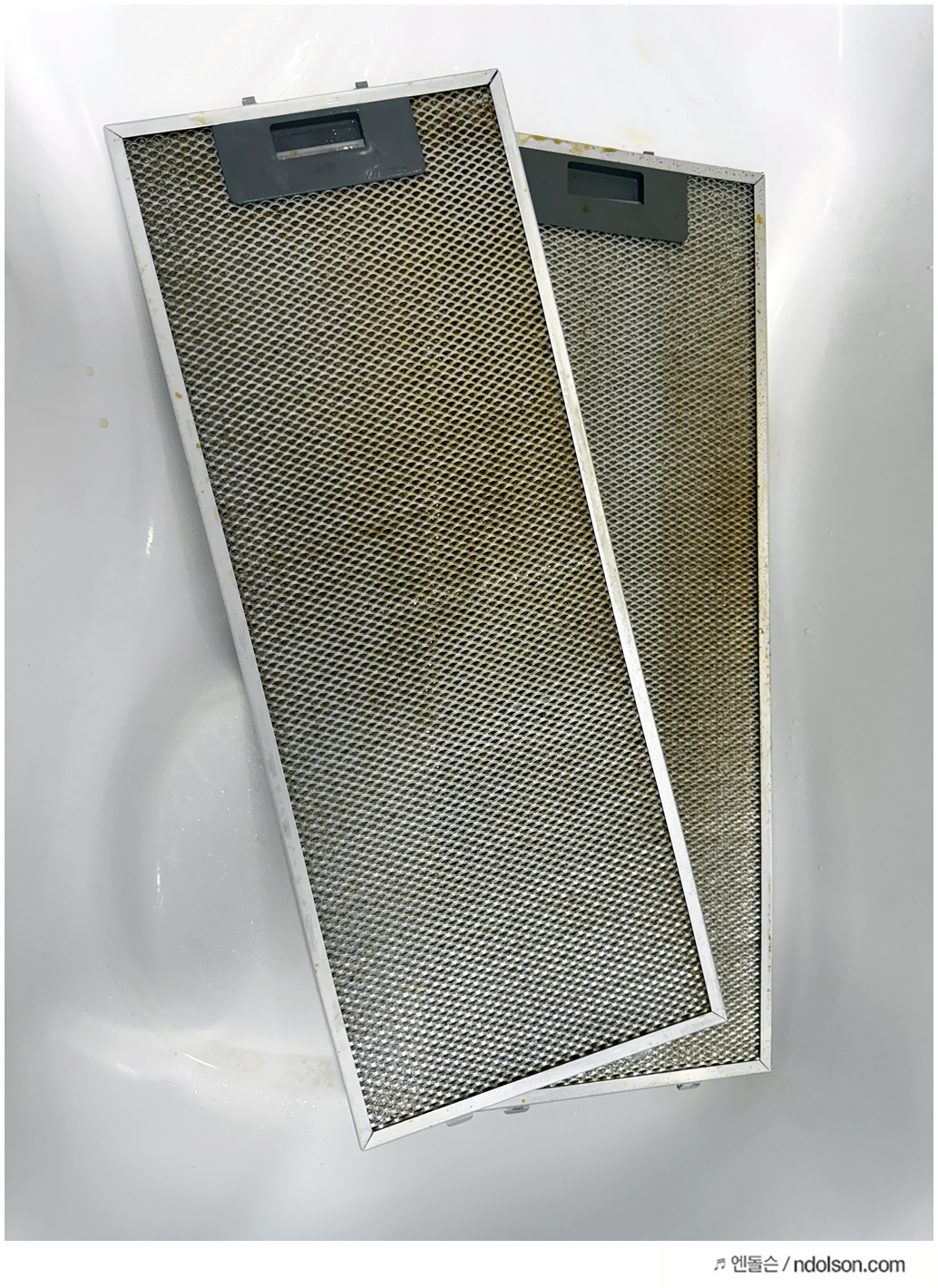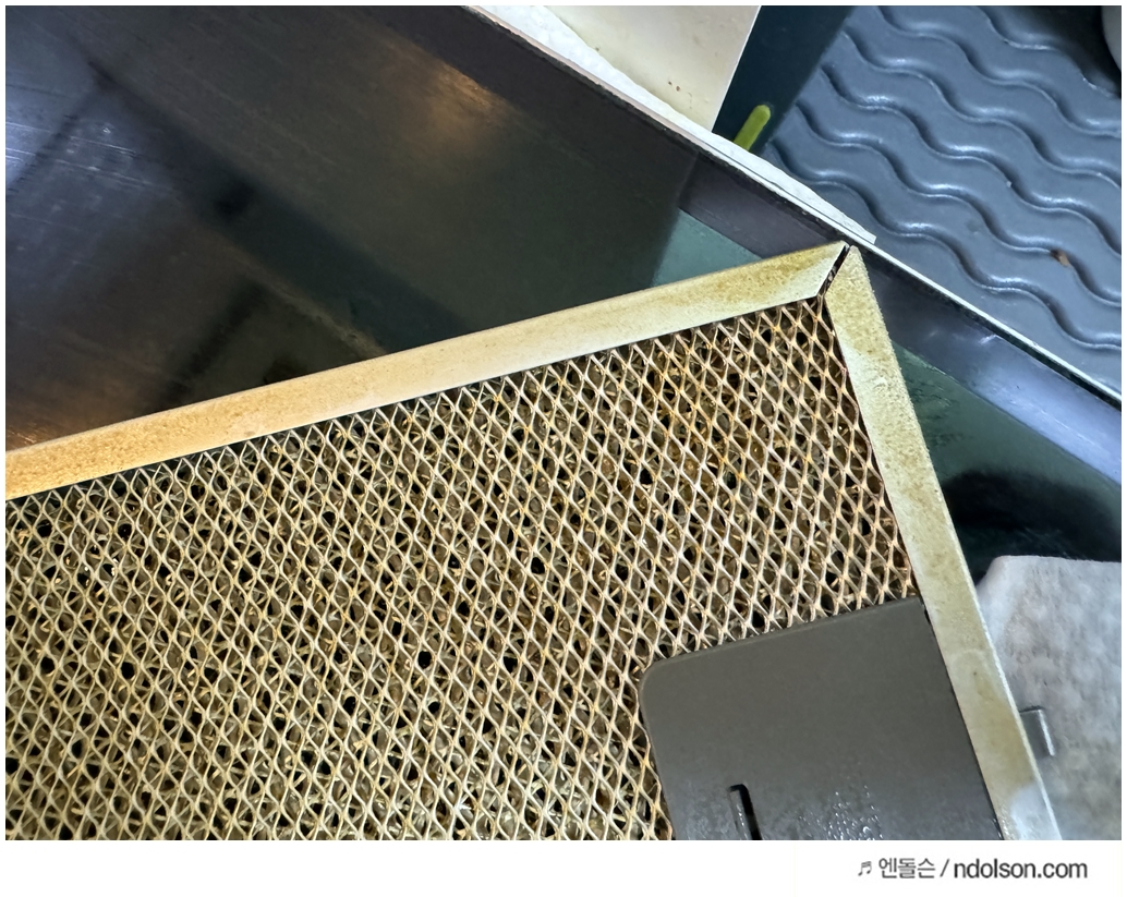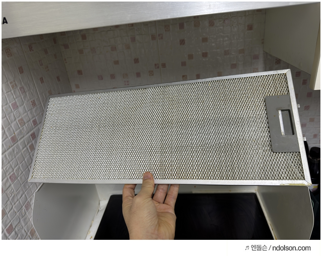 몇년 묶은 기름때가 환기구 후드에 가득했습니다.