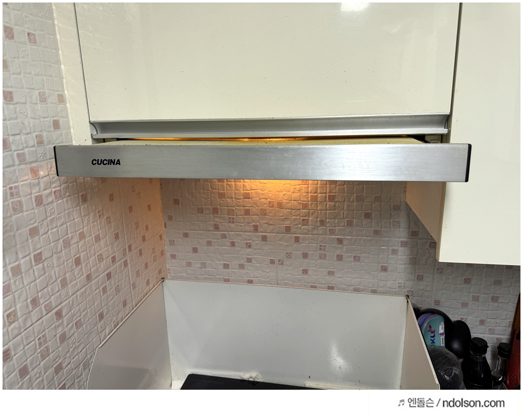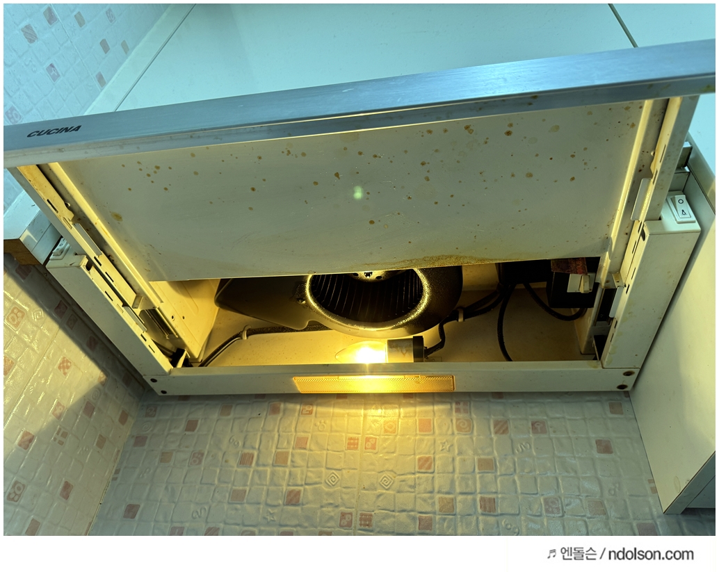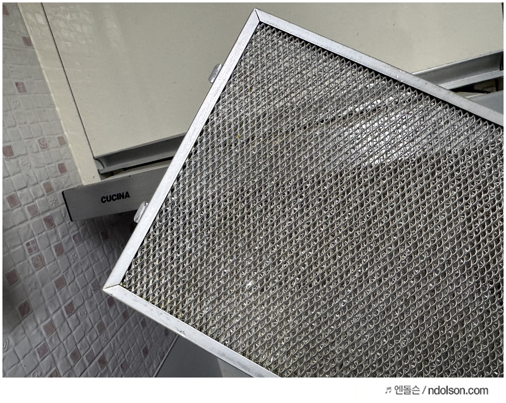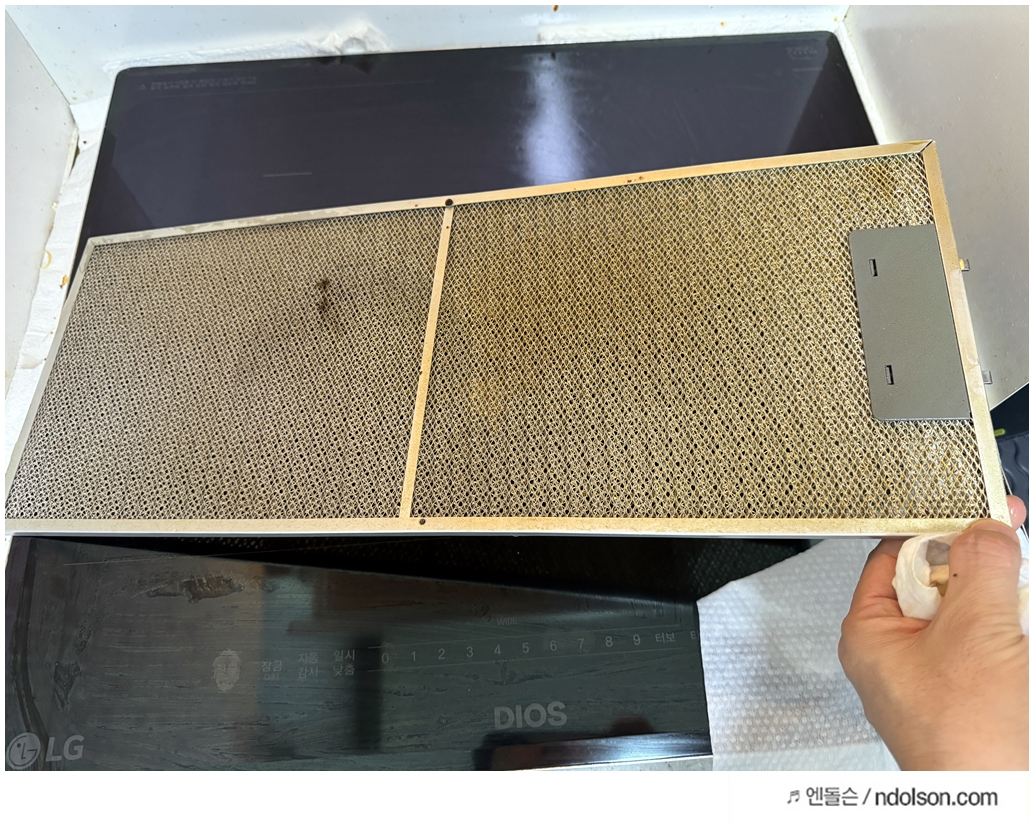 몇년 묶은 기름때가 환기구 후드에 가득했습니다.