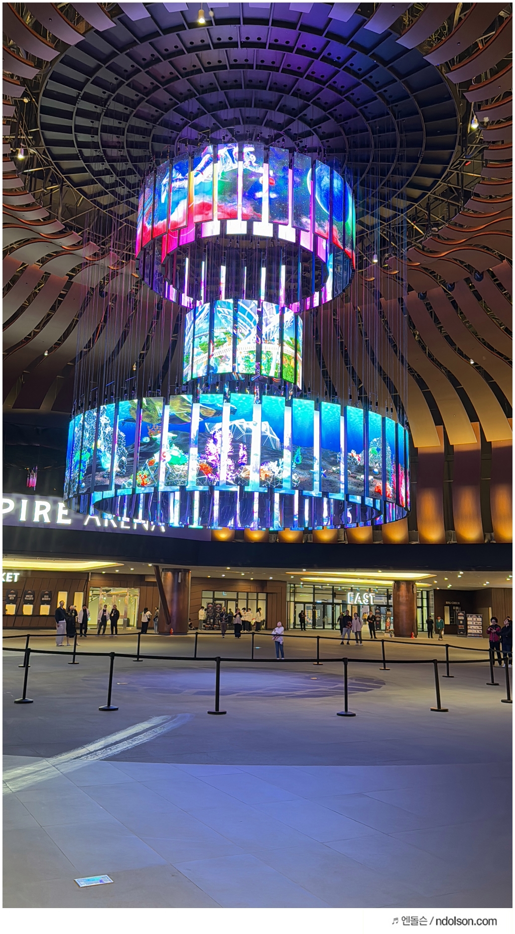 인스파이어 리조트의 중심에 위치한 로툰다에서는 초대형 LED 샹들리에가 설치되어 있습니다.