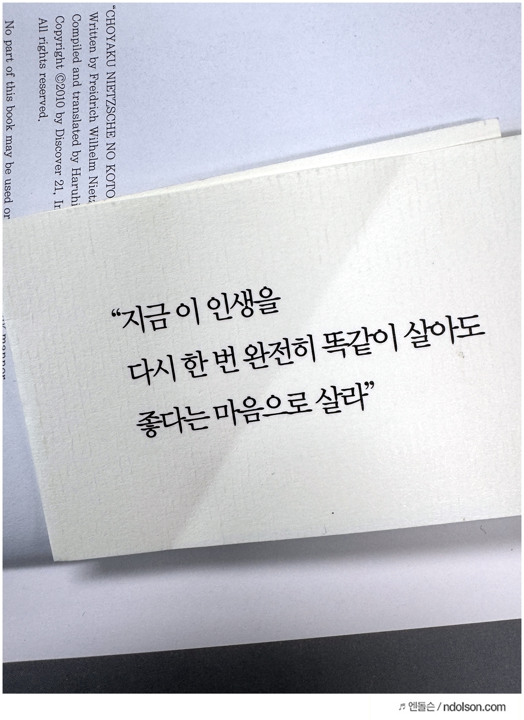 "지금 이 인생을 다시 한번 완전히 똑같이 살아도 좋다는 마음으로 살라" - 니체