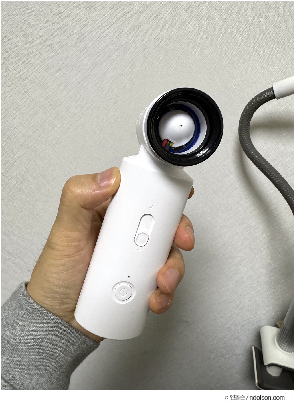 에어건 사용 방법도 너무 쉬워요. 버튼 하나로 온오프, 그리고 또 하나로 바람의 세기를 조절할 수 있어요. 진짜 이거 하나면, 어떤 상황에서든 활용하기 좋은 아이템이네요. 자동차 안에서 먼지 날리기도 좋네요.