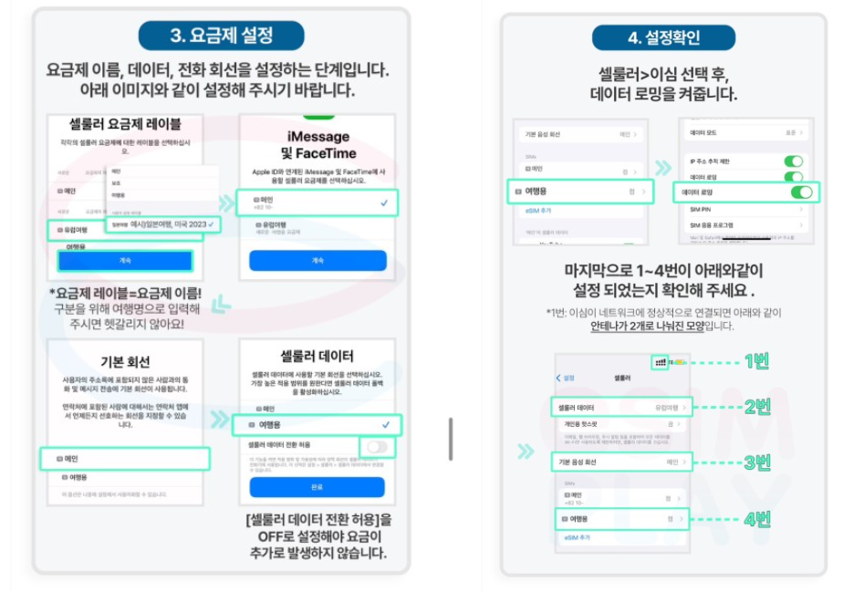 최신 기종의 아이폰을 사용하신다면 eSIM이 정말 편리합니다. 별도의 유심 카드 없이도, 스마트폰에서 바로 설정 가능하며, 여러 개의 번호를 동시에 사용할 수 있어 여행 중에도 현지 번호와 한국 번호를 모두 활용할 수 있습니다.
