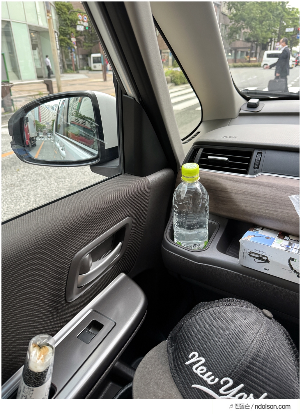 운전석 및 보조좌석 등 수납공간이 많아 김밥과 음료수를 두었습니다.