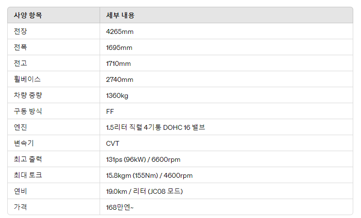 엔진 : 1.5리터 직렬 4기통 DOHC 16 밸브