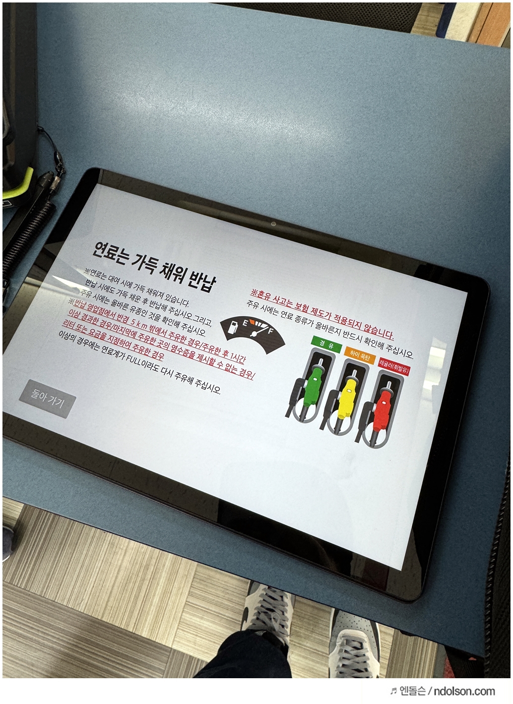 가득 채워서 반납해야 하는데, 호텔까지 가까워 1칸이 안 달았습니다.