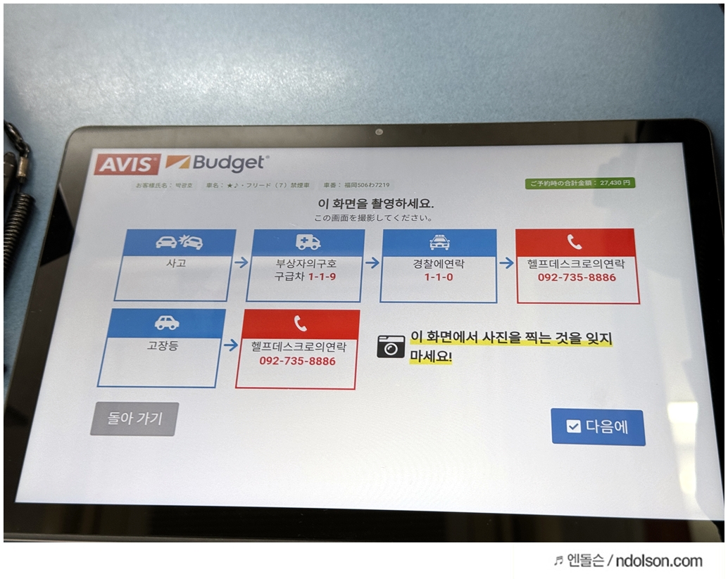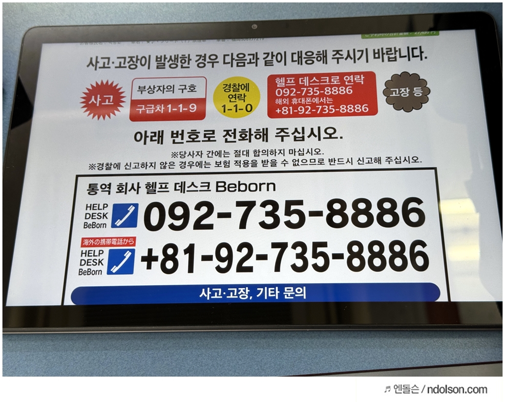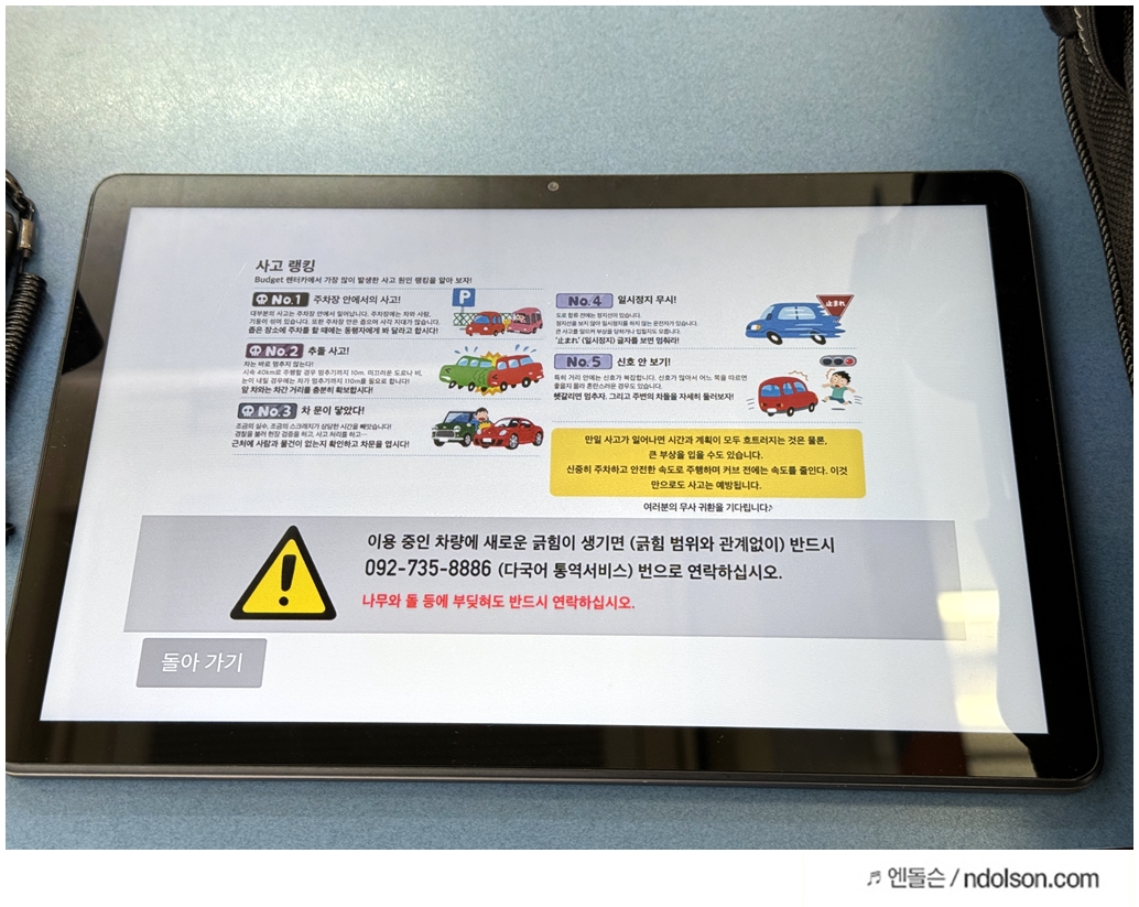 그리고 천천히 가면 사고 안 납니다. 또 사고 나면 렌터카 업체에 전화하세요. 합의로 해결하면 안 된다고 합니다.