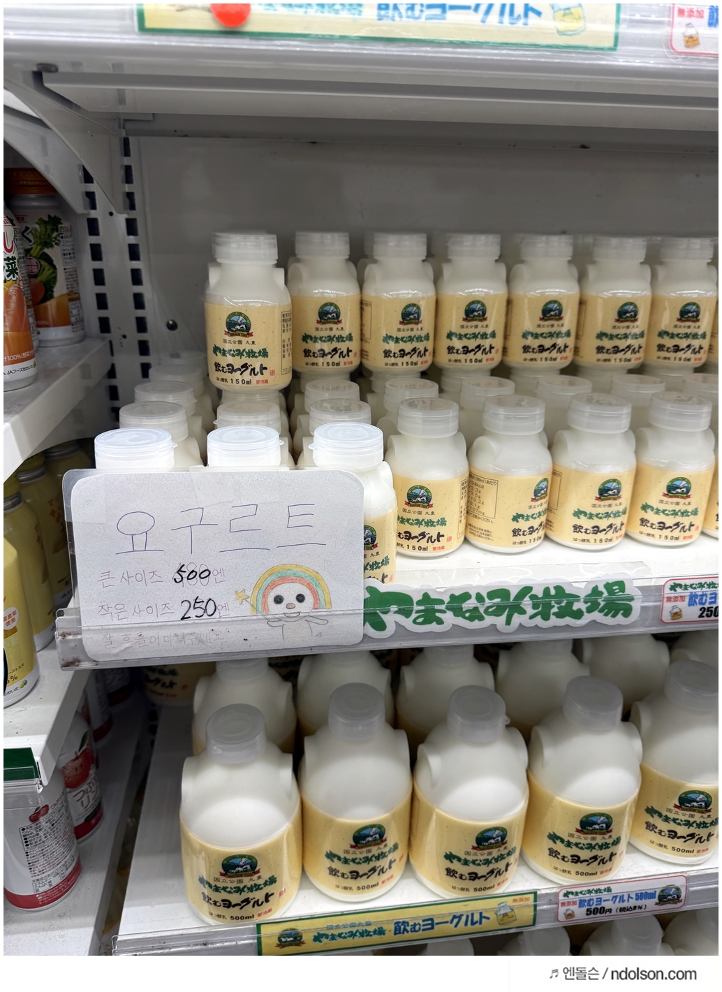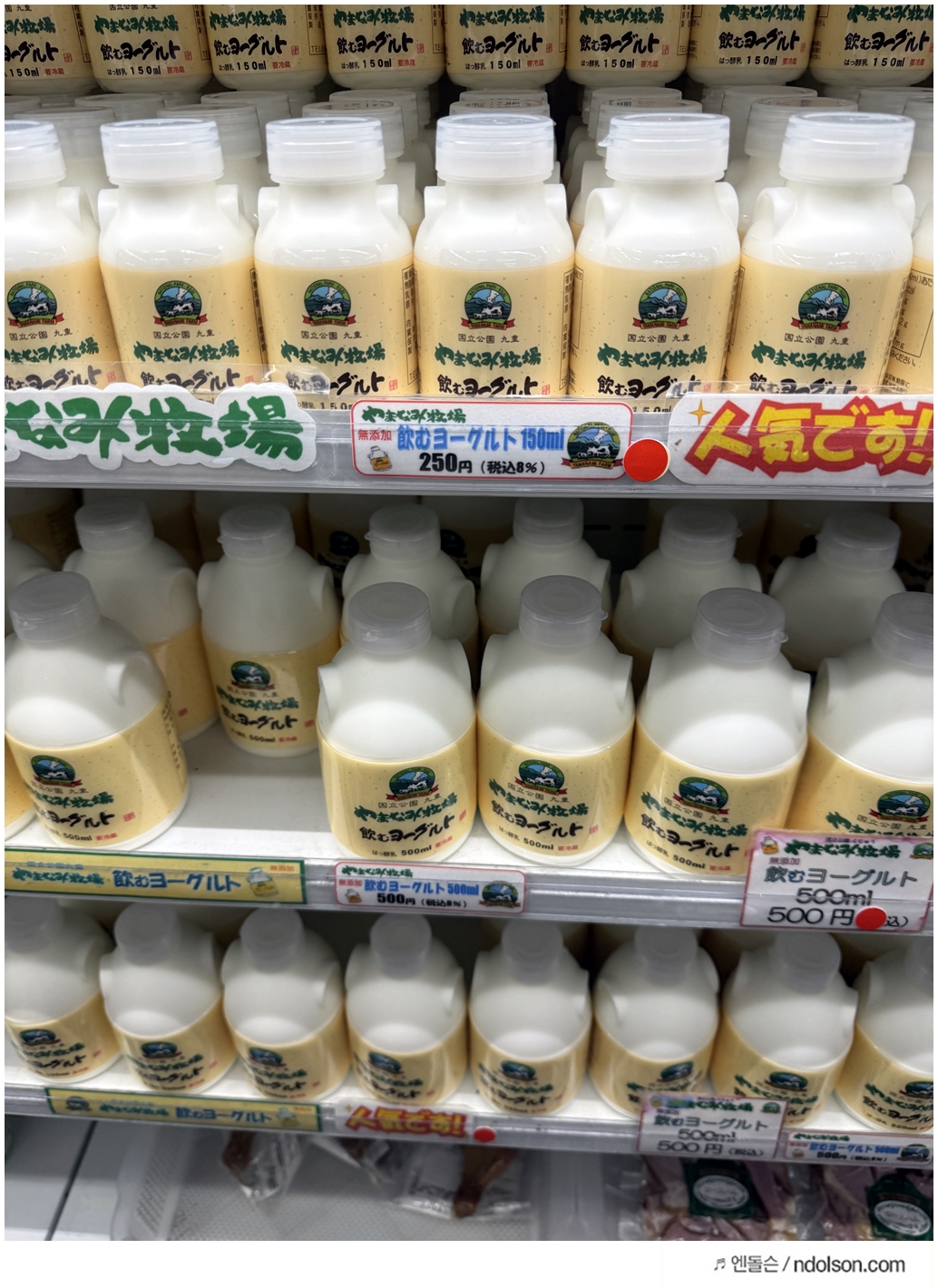 지역 우유인데 야마나기목장 요구르트인데 이 휴게소 밖에 팔지 않는 스페셜 아이템입니다. 250엔 또는 500엔으로 용량 크기가 달라요.