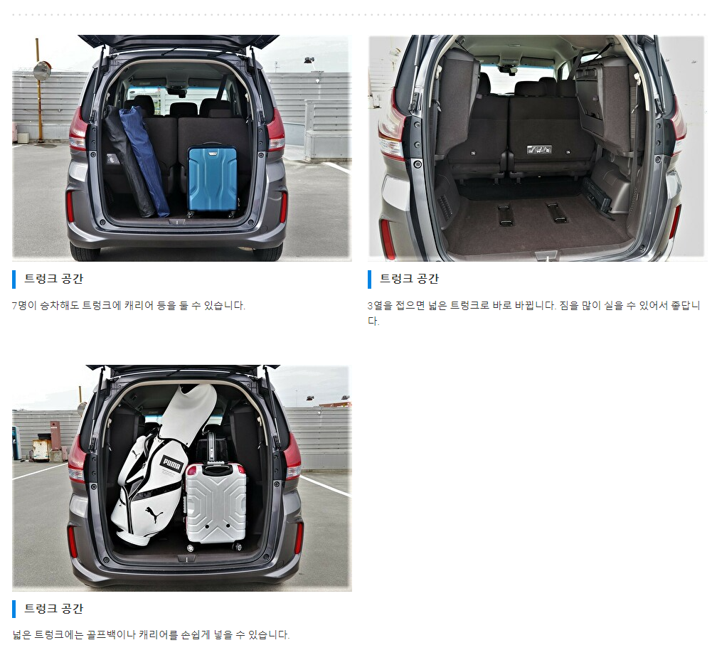 혼다 프리드 트렁크 공간을 참고하세요. 접으면 더 넉넉해집니다.