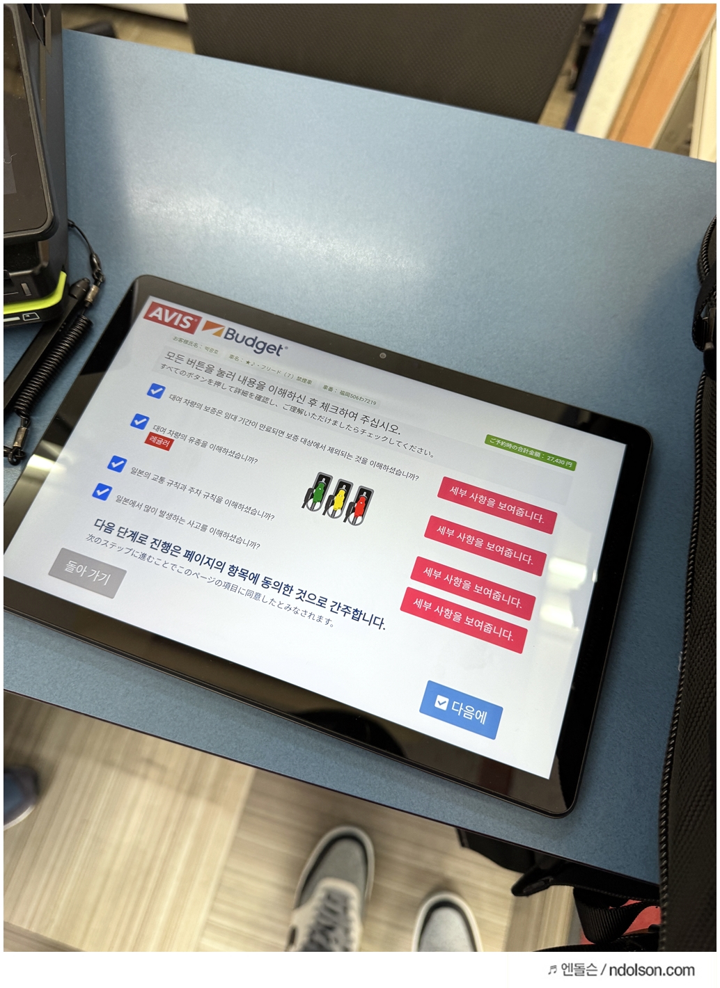 렌트카 빌릴 때 꼼꼼하게 스크래치 부분을 챙겼습니다. 그런데 큰 스크래치 말고는 상관이 없다고 하네요. 그래도 혹시나 몰라 스크래치 부분을 이야기해 주었습니다. 차 상태는 깨끗하고 좋았습니다.