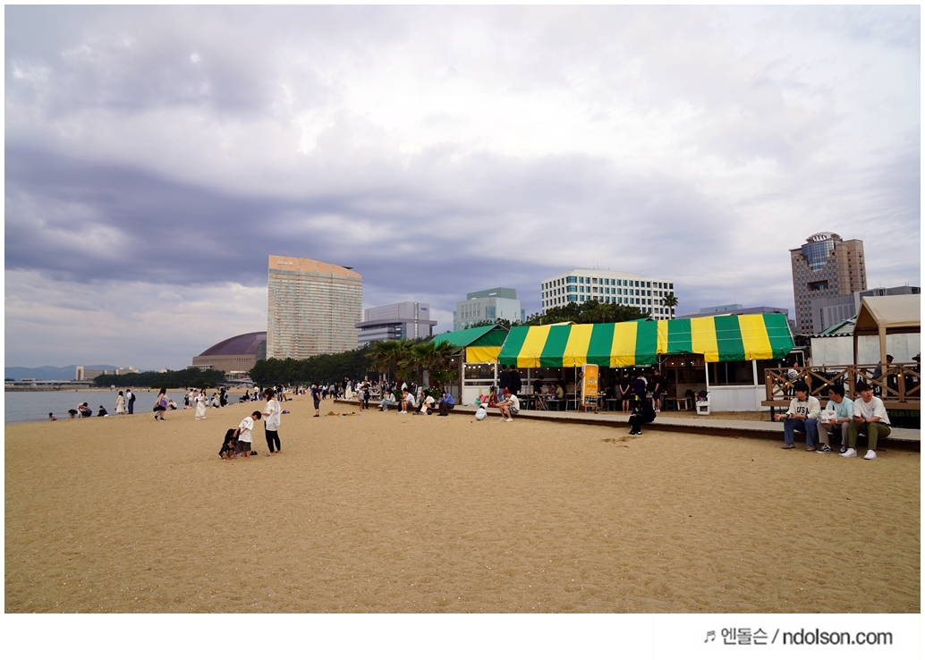 해변은 양쪽으로 가운데로 기준으로 나뉩니다. 후쿠오카 타워가 없는 PayPay페이페이돔 쪽을 더 좋아합니다.