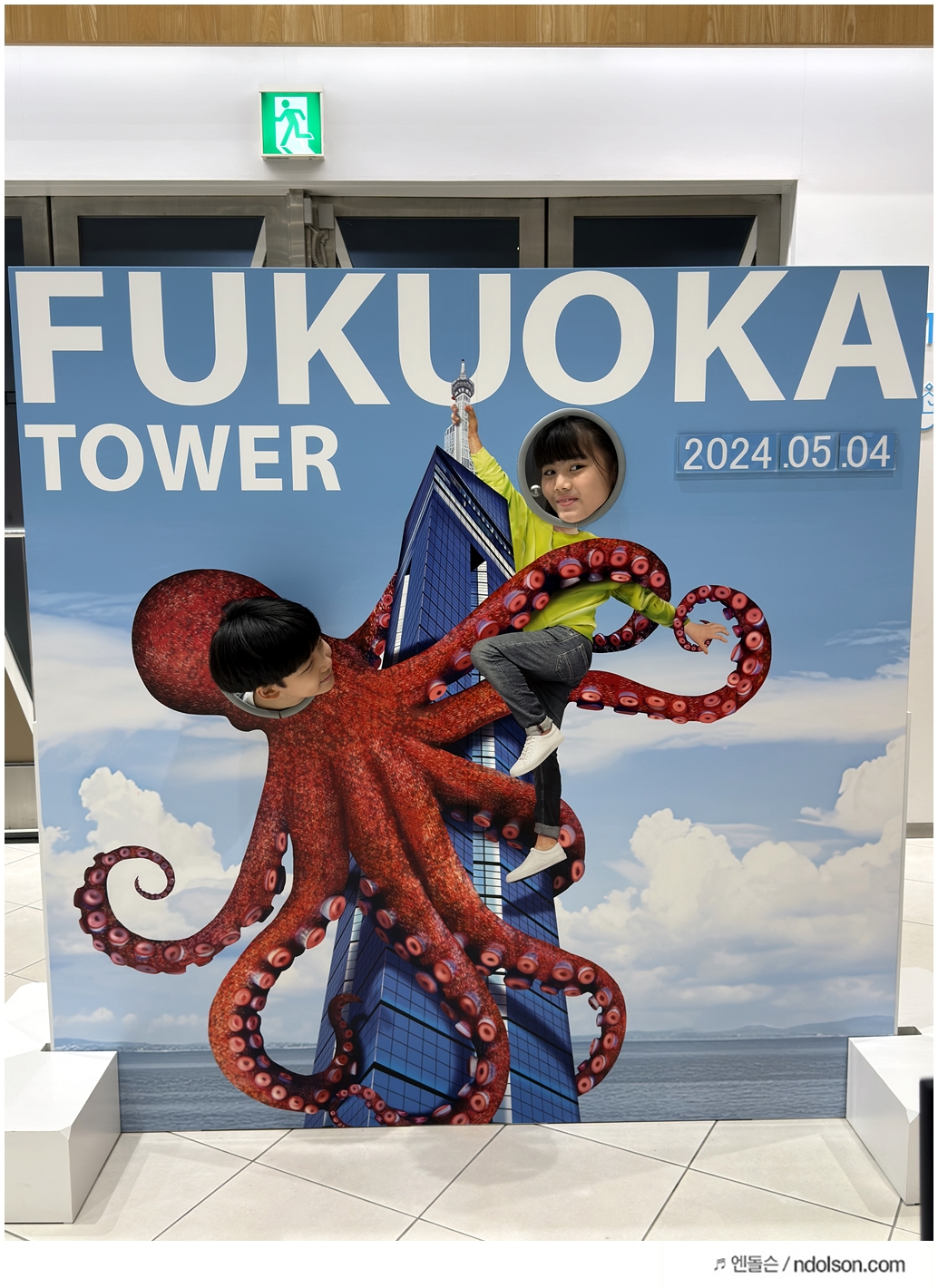 후쿠오카 타워에 올라가는 길에 사진 찍고요.