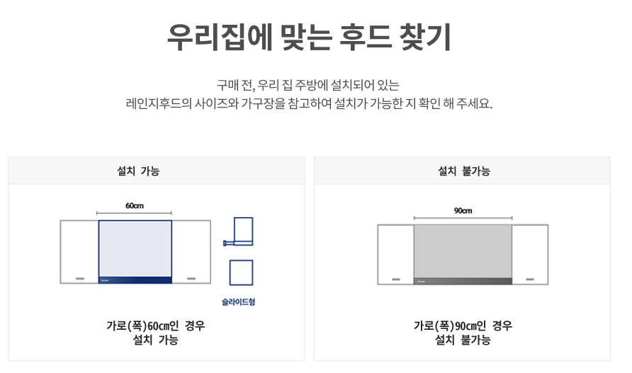 1. 주방후드 사이즈 체크 및 후드 구매