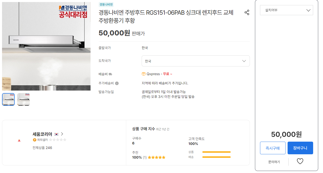 필자는 이번에 나비엔 레인지 후드를 선택했는데, 인터넷에서 합리적인 가격에 쉽게 구할 수 있었습니다.