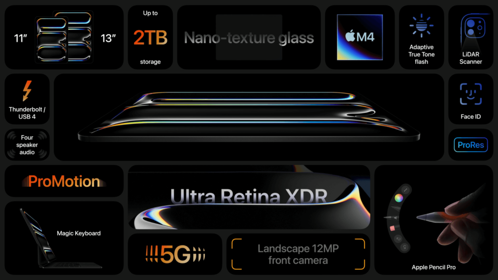 - 특징: 역대 가장 얇은 모델, 울트라 레티나 XDR 디스플레이, 탠덤 OLED 기술
