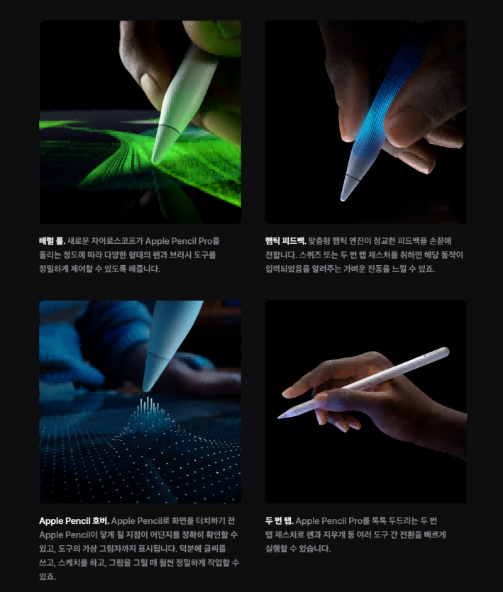 그럼 다음은 애플 펜슬 프로의 주요 기능들입니다.